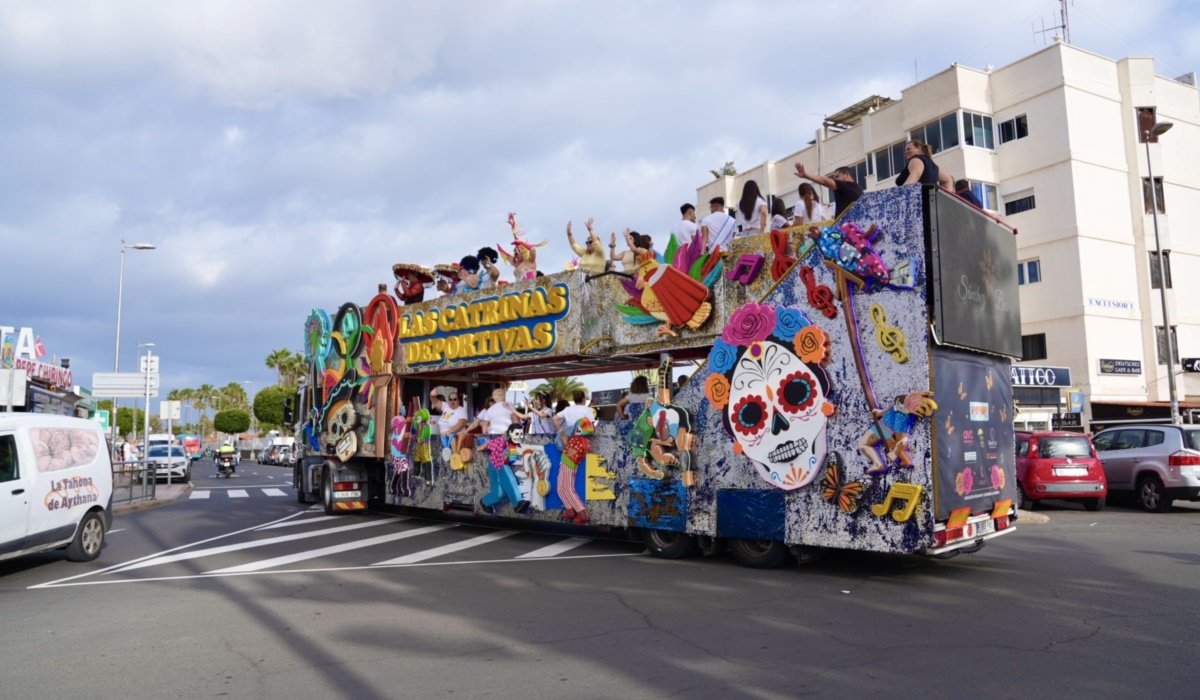 El ritmo carnavalero se pudo sentir en la tarde de este martes por las calles de Maspalomas. Miles de personas se asomaban curiosas para observar la procedencia de la música y sonreían al ver pasar a la carroza anunciadora. No faltaron incluso algunos bailes improvisados de los turistas que paseaban por las calles de Playa del Inglés, preludio de los diez días de fiesta que llegan con el Carnaval Internacional de Maspalomas 2025, Fiesta de Interés Turístico de Canarias.