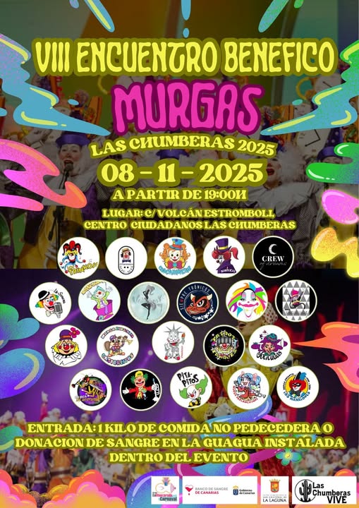 El espíritu carnavalero volverá a brillar en Las Chumberas el próximo 8 de noviembre, a partir de las 19:00 horas, con la celebración del VIII Reencuentro de Murgas Benéfico, un evento ya consolidado que reúne a agrupaciones, simpatizantes y amantes del carnaval en una cita marcada por la solidaridad.