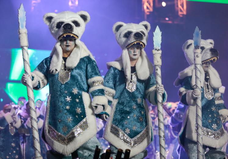 Las Vacilonas, de regreso a la actividad competitiva, tuvieron la responsabilidad del cierre de la fase previa, con los temas ‘Una canción sin ironía y con 300 rajazos’ y ‘La oficina’. Con dirección a cargo de Marta Ruiz, las 64 componentes de este colectivo mostraron una fantasía diseñada por Toño Aparicio.