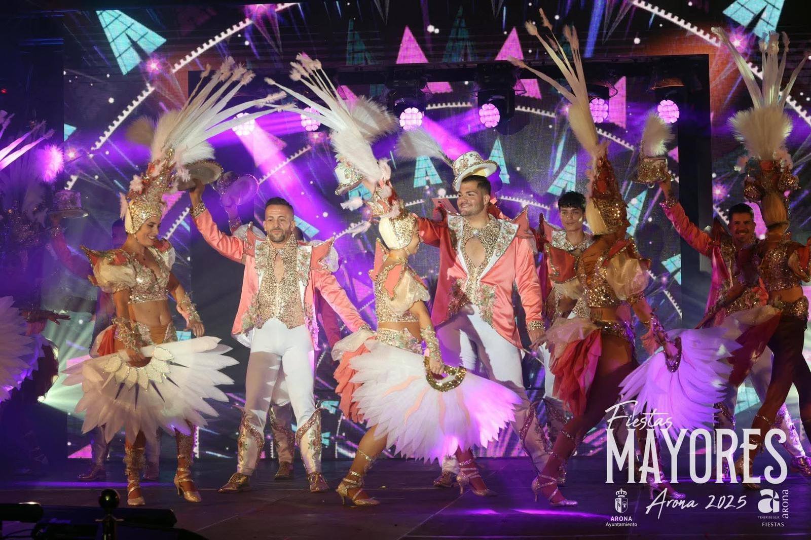 La magia del cabaret, el color de la fantasía y el ritmo contagioso se adueñaron del escenario principal durante la Gala de Elección de la Reina de las Fiestas Mayores de Arona 2025, celebrada anoche. Un evento que no solo coronó a su soberana, sino que convirtió la velada en un espectáculo de alto voltaje gracias a las actuaciones que hicieron vibrar al público.