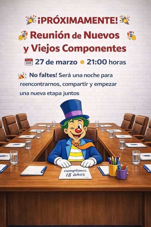 El cartel promocional, de tono festivo y simbólico, muestra una mesa de reunión presidida por un personaje característico del carnaval, una imagen que representa la unión, el diálogo y la toma de decisiones compartidas, valores que la murga busca reforzar en esta nueva etapa.