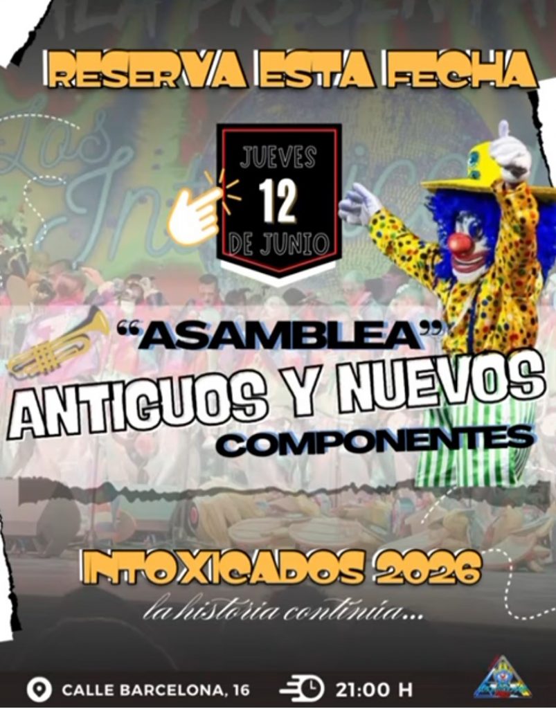 La murga Los Intoxicados está lista para dar un nuevo salto en su trayectoria. Con el lema “La historia continúa…”, el grupo ha convocado una reunión clave este miércoles 12 de junio a las 21:00 horas en su local, situado en la calle Barcelona, 16. El objetivo: unir fuerzas entre antiguos miembros y nuevas caras que quieran sumarse al proyecto de cara a la temporada 2026.