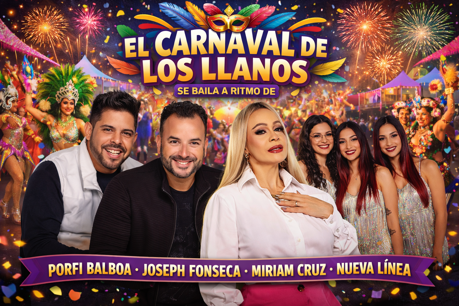 La noche grande del lunes concentra varios de los nombres más potentes del cartel. La dominicana Miriam Cruz —voz legendaria de Las Chicas del Can—, el puertorriqueño Joseph Fonseca y un tributo expreso a Manny Manuel compartirán escenario con Grupo Extra. Al mando de las mesas, Yardy, Aguiloche y T3NAX.