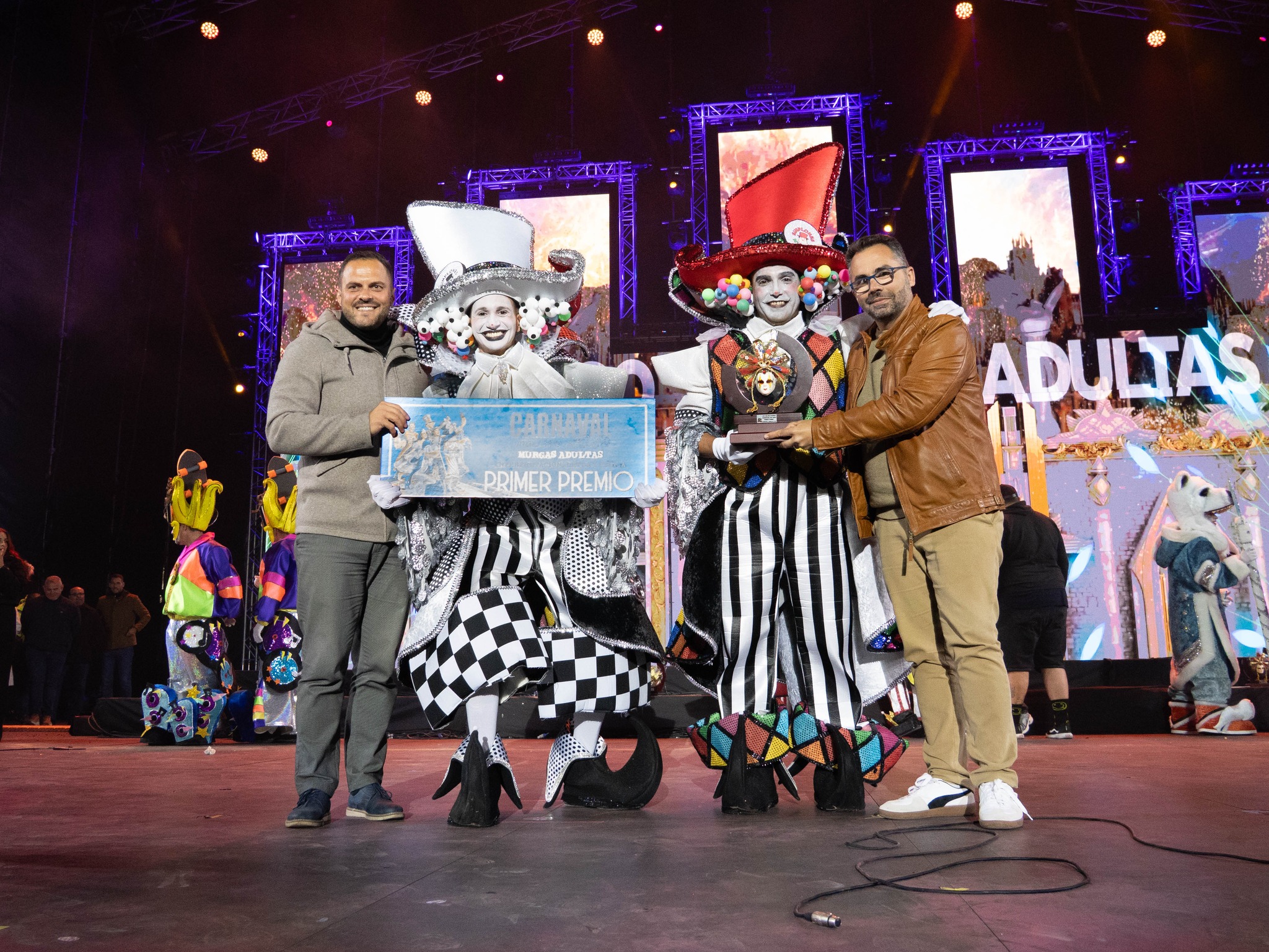 Esta última canción les hizo merecedoras de los premios ‘Carlos Pérez’ a la letra más ingeniosa que conceden Los Simplones. También recibieron el premio ‘Ambrosio Cabrera’ que otorga la murga Los Gorfines a la mejor letra de las tres fases por su canción ‘Un tema intensamente emocional’, que interpretaron en la primera fase del lunes; y el premio ‘Franciso José Navarro’ a la murga con más magia que conceden Las Vacilonas.