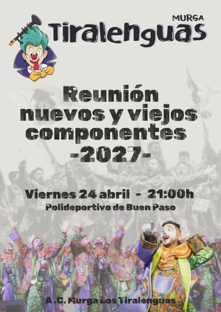 La Murga Los Tiralenguas lanza un llamamiento a quienes deseen sumergirse de lleno en la experiencia murguera. Bajo el lema “Vivirlo desde dentro es otra historia”, el colectivo ha convocado una reunión abierta para hoy viernes 24 de abril, a las 21:00 horas, en su habitual espacio de ensayo ubicado en el núcleo de Buen Paso, dentro del municipio de Icod de los Vinos.