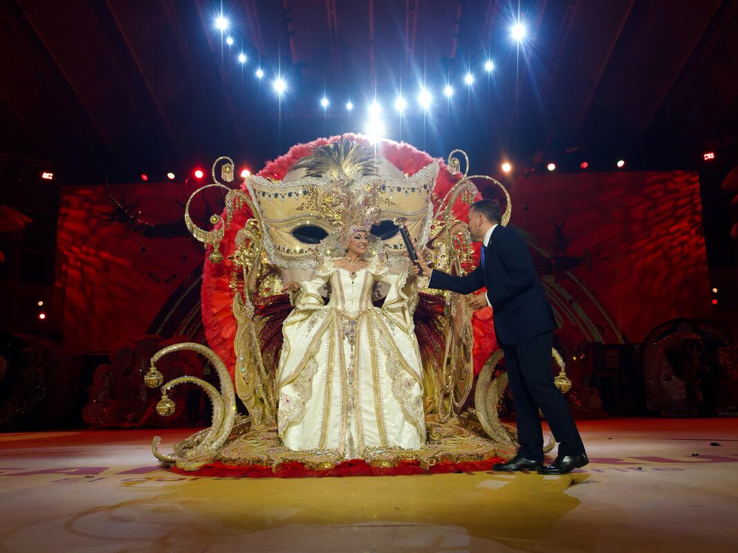 María Julia Bello fue proclamada esta noche Reina de los Mayores del Carnaval de Santa Cruz 2025, dedicado a “Los Secretos de África”, luciendo la fantasía “Yo soy Carnaval”, diseñada por David Afonso Hernández, en representación de academia de baile Dile que Sí y Espectáculos Alma Show, un cetro que le fue entregado por el alcalde de la ciudad, José Manuel Bermúdez, a quien acompañaron en el escenario el concejal de Fiestas, Javier Caraballero, y la presidenta del Cabildo, Rosa Dávila, en el transcurso de una Gala en la que más 5.400 personas disfrutaron de un espectáculo repleto de música y humor.