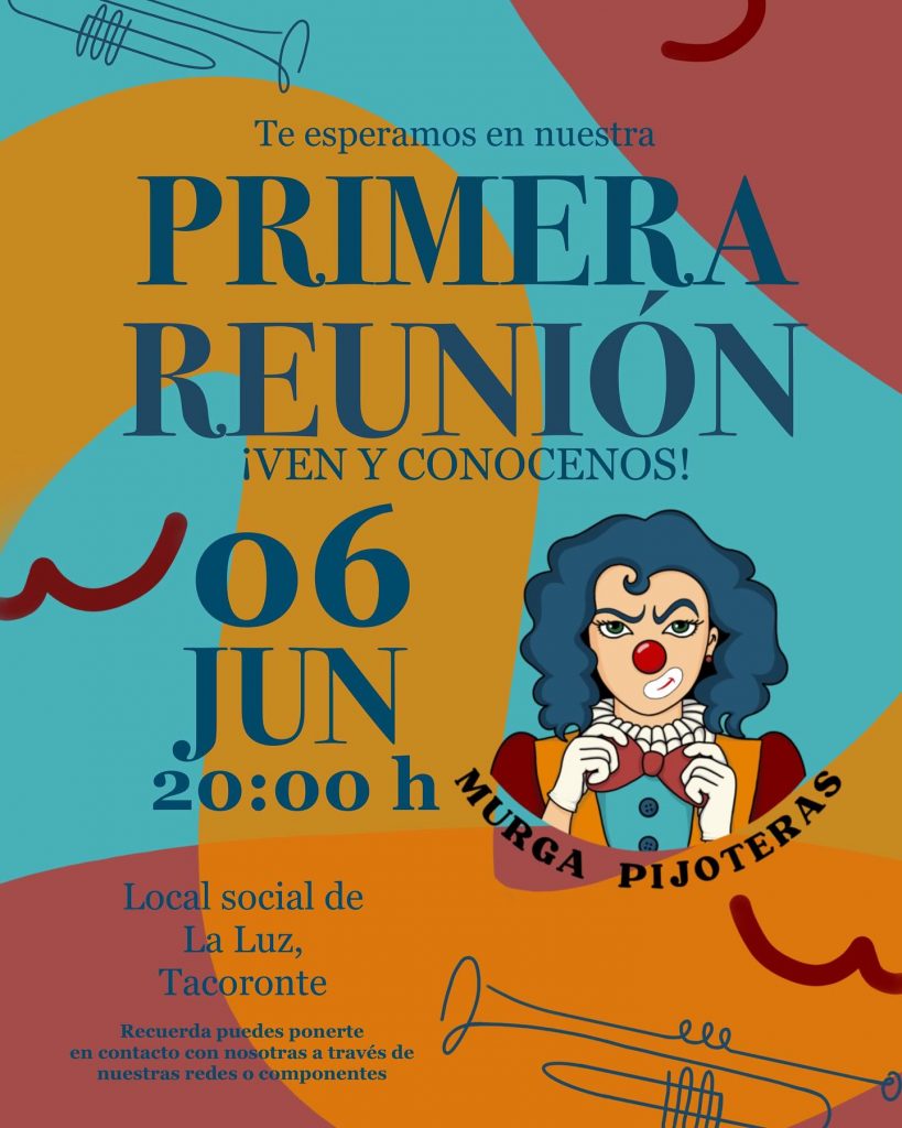 El reloj de las Pijoteras marca la hora: este viernes 6 de junio a las 20:00 horas, el Local Social La Luz en Tacoronte abrirá sus puertas para la esperada primera reunión del año de esta irreverente murga femenina. Con el lema “Un poquito más cerca de ser Pijotera”, la agrupación invita a mujeres a sumarse a su “familia” de humor, crítica social y música.