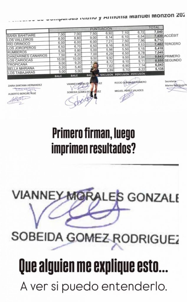Tras la celebración del certamen y la publicación de las puntuaciones, ha salido a la luz una circunstancia que ha despertado numerosas dudas: las actas oficiales muestran los resultados impresos por encima de las firmas de los miembros del jurado, un detalle que ha sido interpretado por muchos como, cuanto menos, una grave irregularidad administrativa.