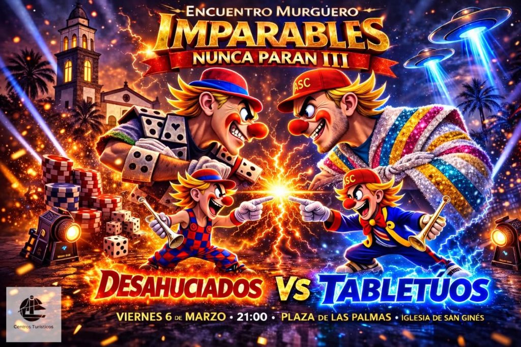 El ritmo del Carnaval en la capital de Lanzarote encuentra este viernes una nueva expresión. El epicentro de la fiesta se trasladará a la Plaza de Las Palmas, justo frente a la fachada de la Iglesia de San Ginés, para albergar un duelo de altura entre dos de las agrupaciones más destacadas del panorama murguero local: Desahuciados y Tabletúos. La cita, programada para las 21:00 horas, promete convertir el enclave en un hervidero de críticas ocurrentes y melodías pegadizas.