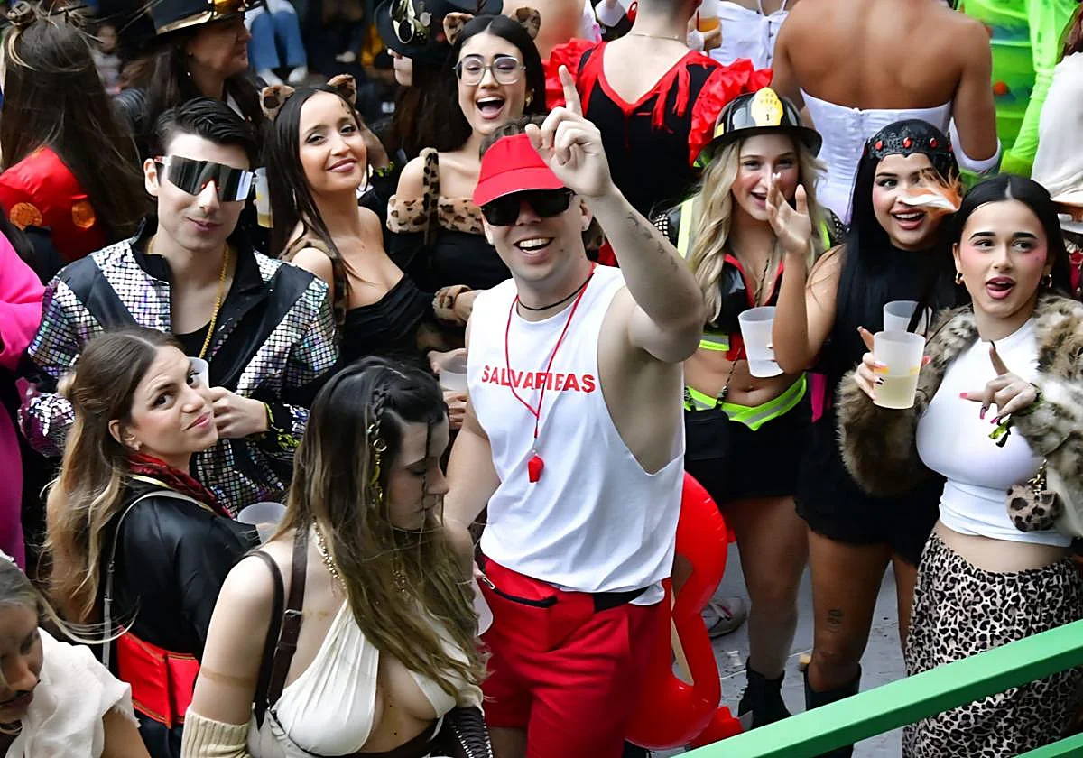 El revuelo generado a partir de ese momento no hizo más que crecer. Cuando la comitiva alcanzó las inmediaciones del recinto de Santa Catalina, la marea humana se intensificó. El artista, lejos de mantenerse en un segundo plano, se dejó ver bailando animadamente sobre la carroza, acompañado de varias personas, respondiendo a los vítores y coreando junto al público mientras la música ambiental envolvía el desfile.