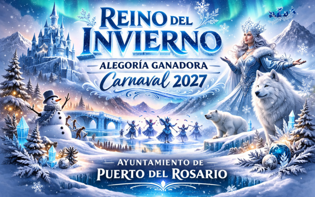 El Ayuntamiento de Puerto del Rosario anuncia la alegoría “Reino del Invierno” ganadora en la votación popular para elegir la temática del Carnaval 2027. Tras el proceso participativo desarrollado entre el 6 y el 20 de febrero a través de la página web municipal. Reino del Invierno será la alegoría del Carnaval de Puerto del Rosario 2027