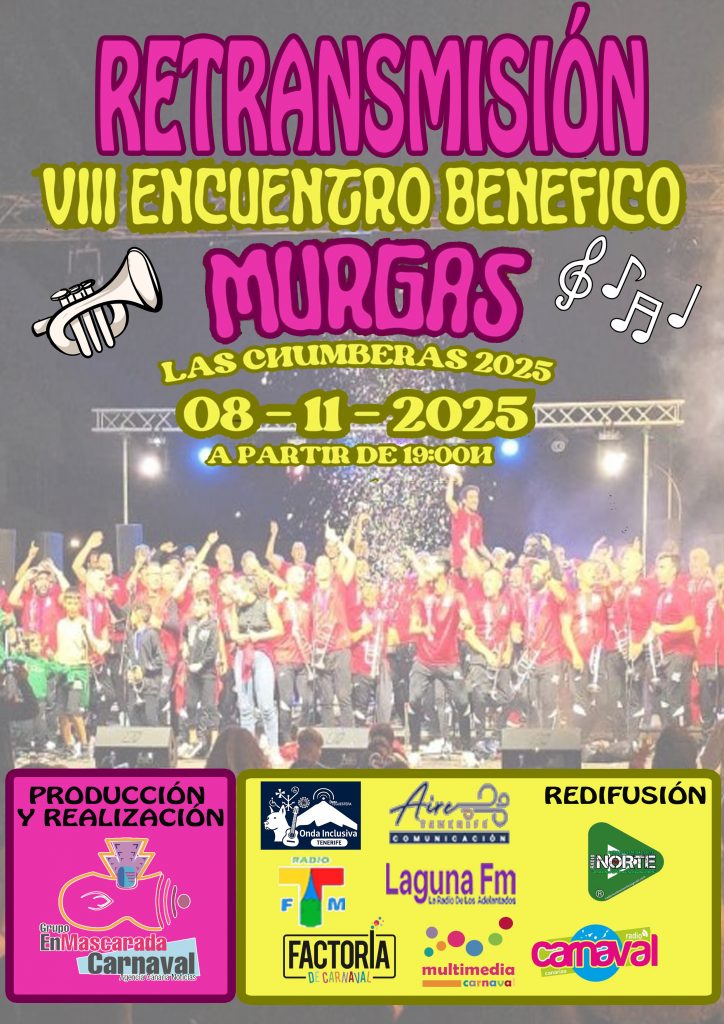 El Grupo EnMascarada Carnaval tiene todo listo para el VIII Encuentro de Murgas Benéfico, que regresa para llenar de ritmo y color Las Chumberas el próximo sábado 8 de noviembre, desde las 19:00 horas. 🎉