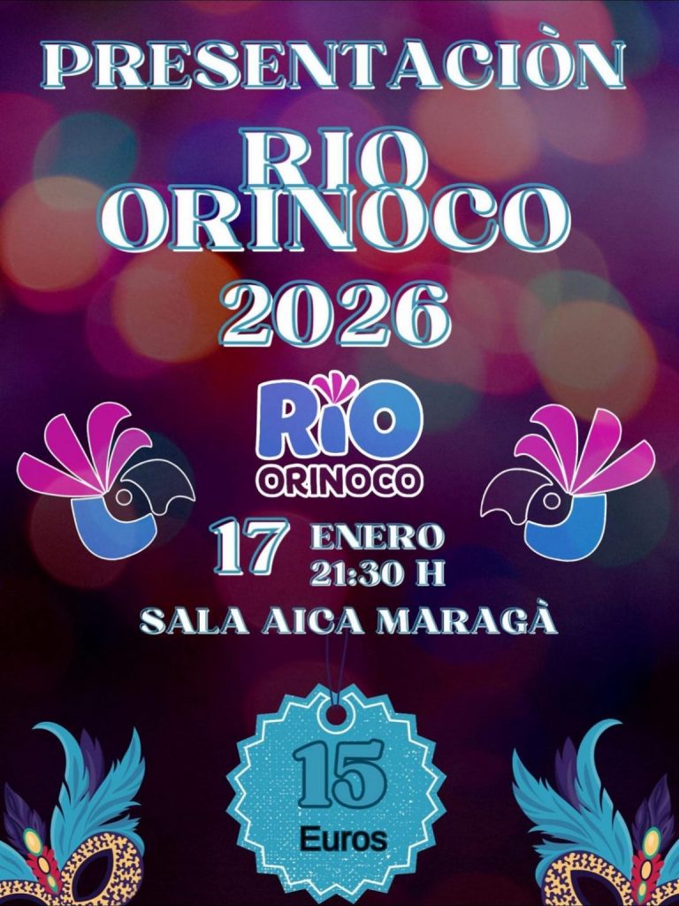 La agrupación Río Orinoco dará el pistoletazo de salida a su andadura carnavalera con la Presentación Río Orinoco 2026, un espectáculo que tendrá lugar el viernes 17 de enero, a las 21:30 horas, en la Sala Aica Maragá.