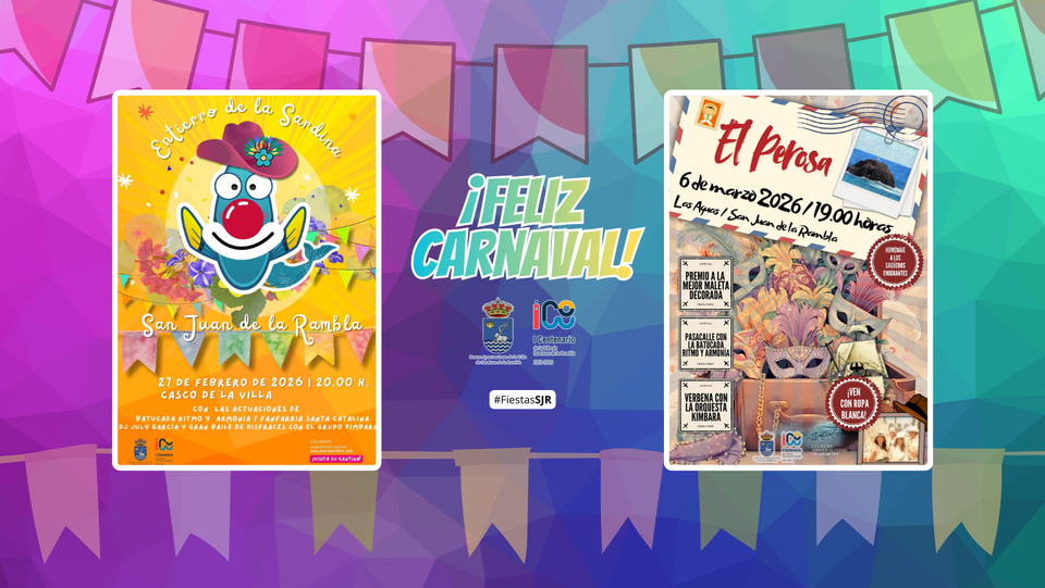 El Ayuntamiento de la Villa de San Juan de la Rambla, a través de la Concejalía de Fiestas que dirige María García, presenta la programación del Carnaval 2026, una edición que vuelve a poner el foco en los actos tradicionales e históricos que forman parte de la identidad cultural del municipio y que suma nuevas iniciativas impulsadas junto a las distintas comisiones festivas.