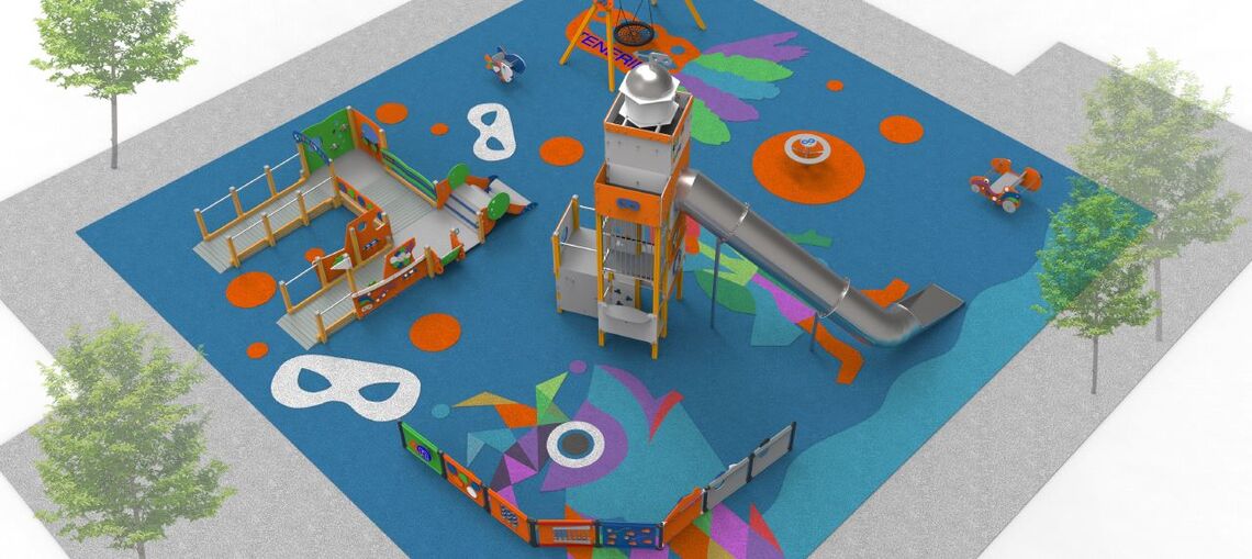 El parque infantil, que ocupará una superficie de aproximadamente de 478 m2, contará con una temática inspirada en el Carnaval. Este espacio ofrecerá un lugar de juego seguro y divertido, y estará compuesto por catorce módulos que incluyen elementos como “La Casa de las Murgas”, “Carroza y Pasadizo”, “Chicharro Carnavalero”, “Carrusel Carnaval” y otros paneles interactivos que fomentan el aprendizaje y la creatividad de los niños.