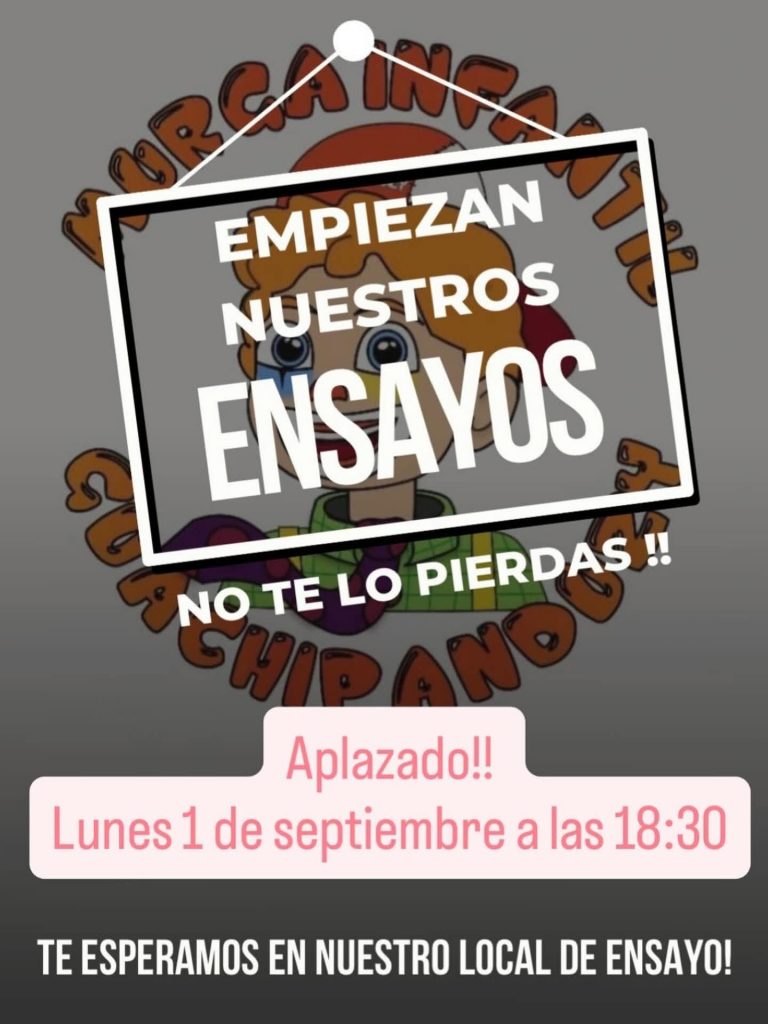 Por motivos de las obras que actualmente se están llevando a cabo en el mercado del Barrio de La Salud, la Murga Infantil Guachipanduzy se decidió aplazar el inicio de sus ensayos.