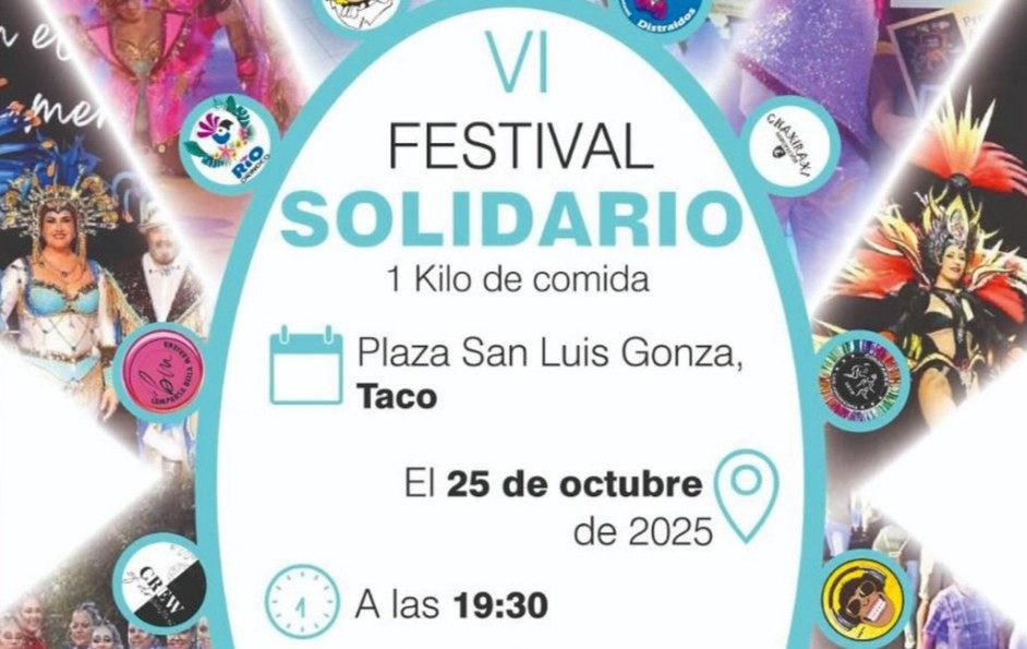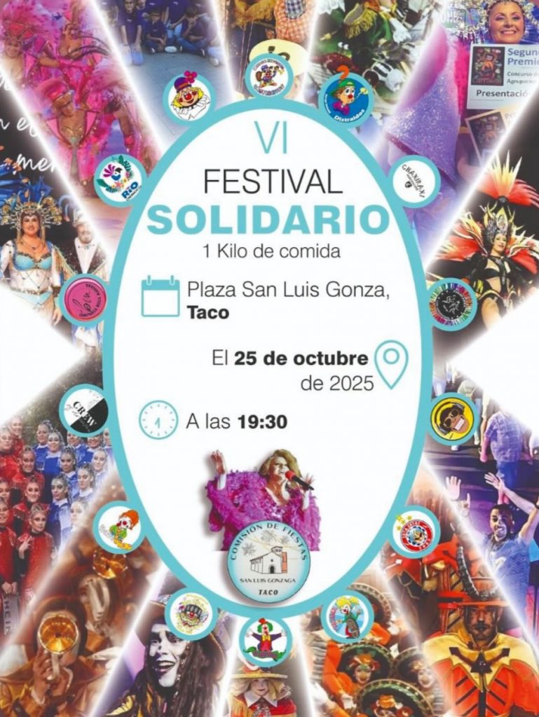 La plaza San Luis Gonzaga de Taco será, una vez más, el epicentro de la solidaridad y la cultura. La Comisión de Fiestas de Taco ha desvelado ya el cartel oficial de su VI Festival Solidario, que tendrá lugar el próximo 25 de octubre a partir de las 19:30 horas, prometiendo una “noche llena de música, baile y alegría” para todos los asistentes.