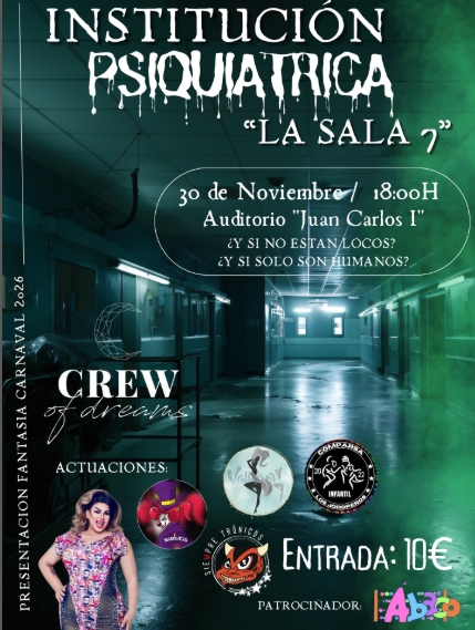 El grupo coreográfico Crew of Dreams ha anunciado el estreno de su ambicioso proyecto para el Carnaval 2026, una puesta en escena que promete revolucionar los cánones de la fiesta chicharrera. Bajo el intrigante título “Institución Psiquiátrica La Sala 7”, la formación desembarcará el 30 de noviembre en el Auditorio Juan Carlos I con una propuesta artística que cuestiona los límites entre la locura y la normalidad.