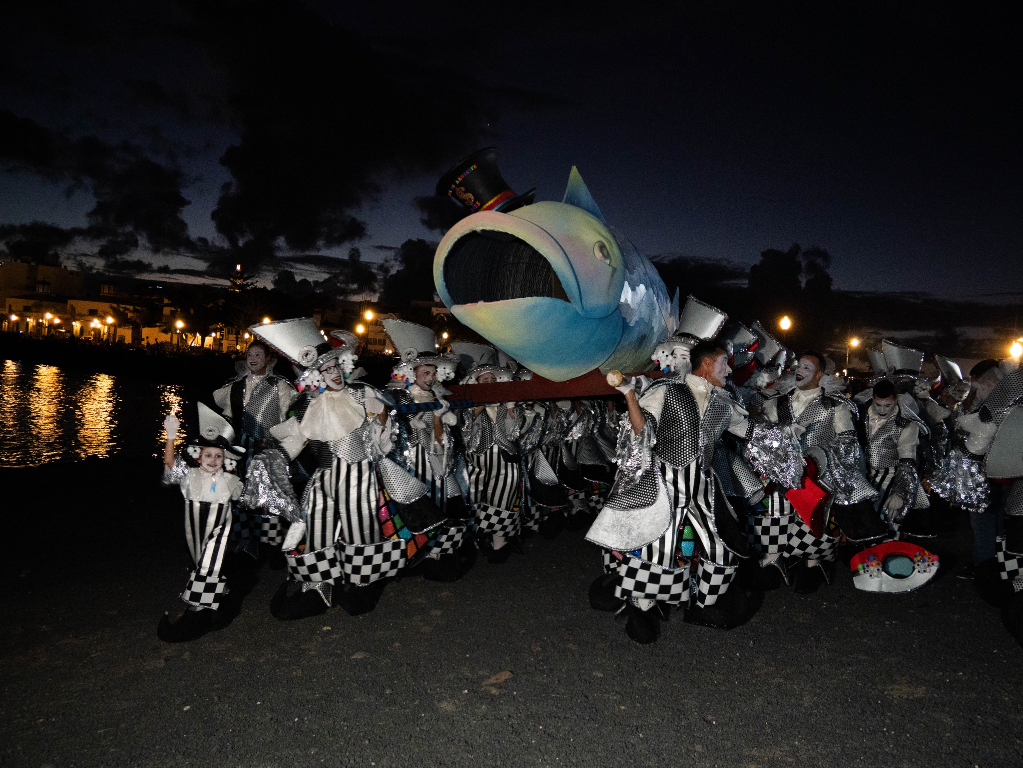 El cortejo fúnebre partió a las 18 horas desde la rotonda del Arrecife Gran Hotel hasta la Playa de la Rocar donde la Afilarmónica Los Simplones, vencedora del concurso de murgas adultas, depositó en la pira funeraria a Doña Sardina, mientras que los ganadores del concurso de murgas infantiles, Los Noveleros, hicieron lo propio con el Pejín, al igual que sucedió por vez primera el pasado año.