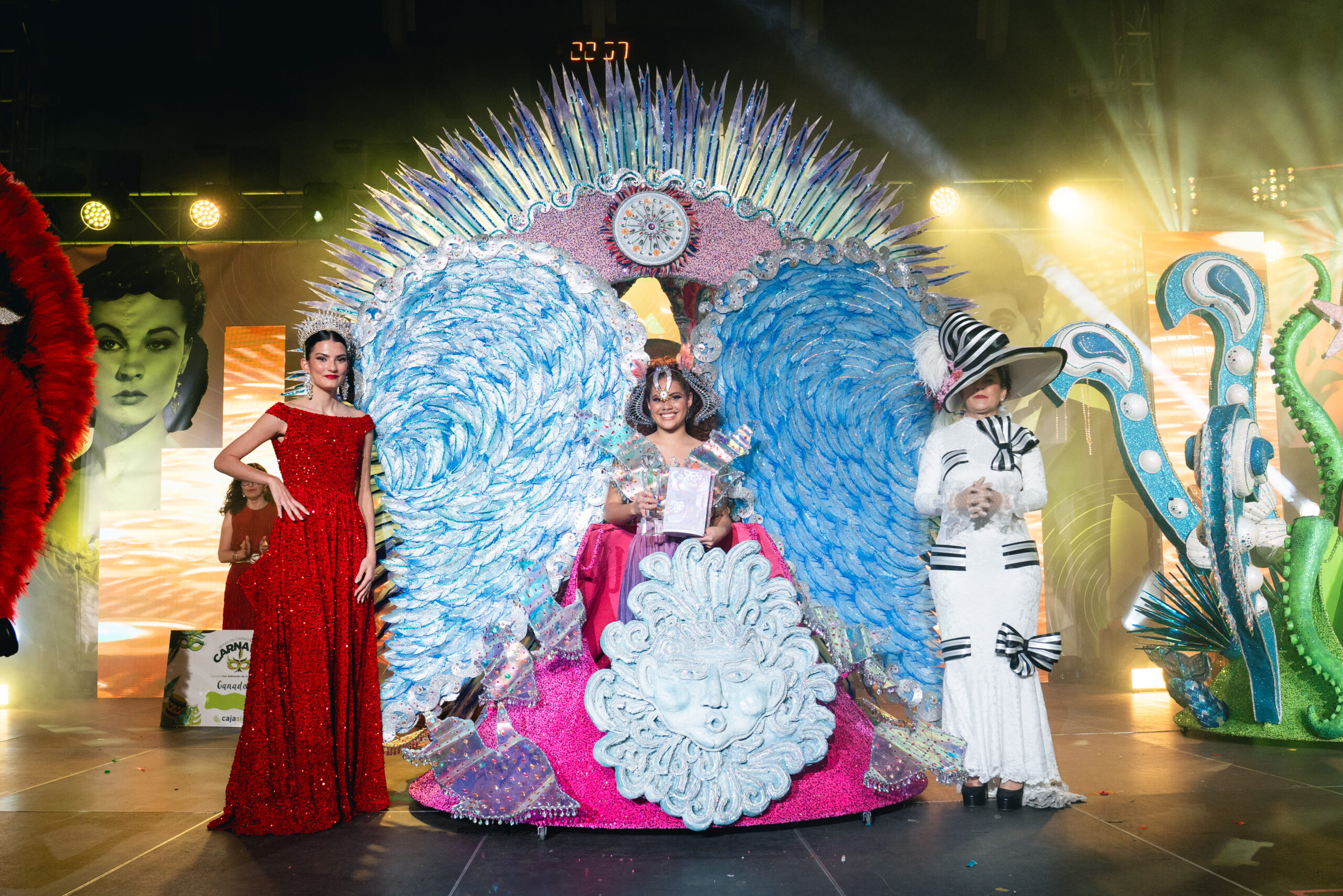 Por su parte, el cetro de la realeza adulta fue a parar a manos de Andrea Valentina Crespo Angulo. La nueva soberana, que representaba a Cafetería Cacao y Modas Guada, lució la fantasía “Etéreo”, una pieza de Samuel Herrera Díaz. A su lado, como Dama de Honor, estará Daiara Rodríguez Padilla, quien portaba la fantasía “El Lucifer del Azul”, también diseñada por Herrera Díaz, y representaba a la Comparsa Bugalú y otras entidades de la isla.