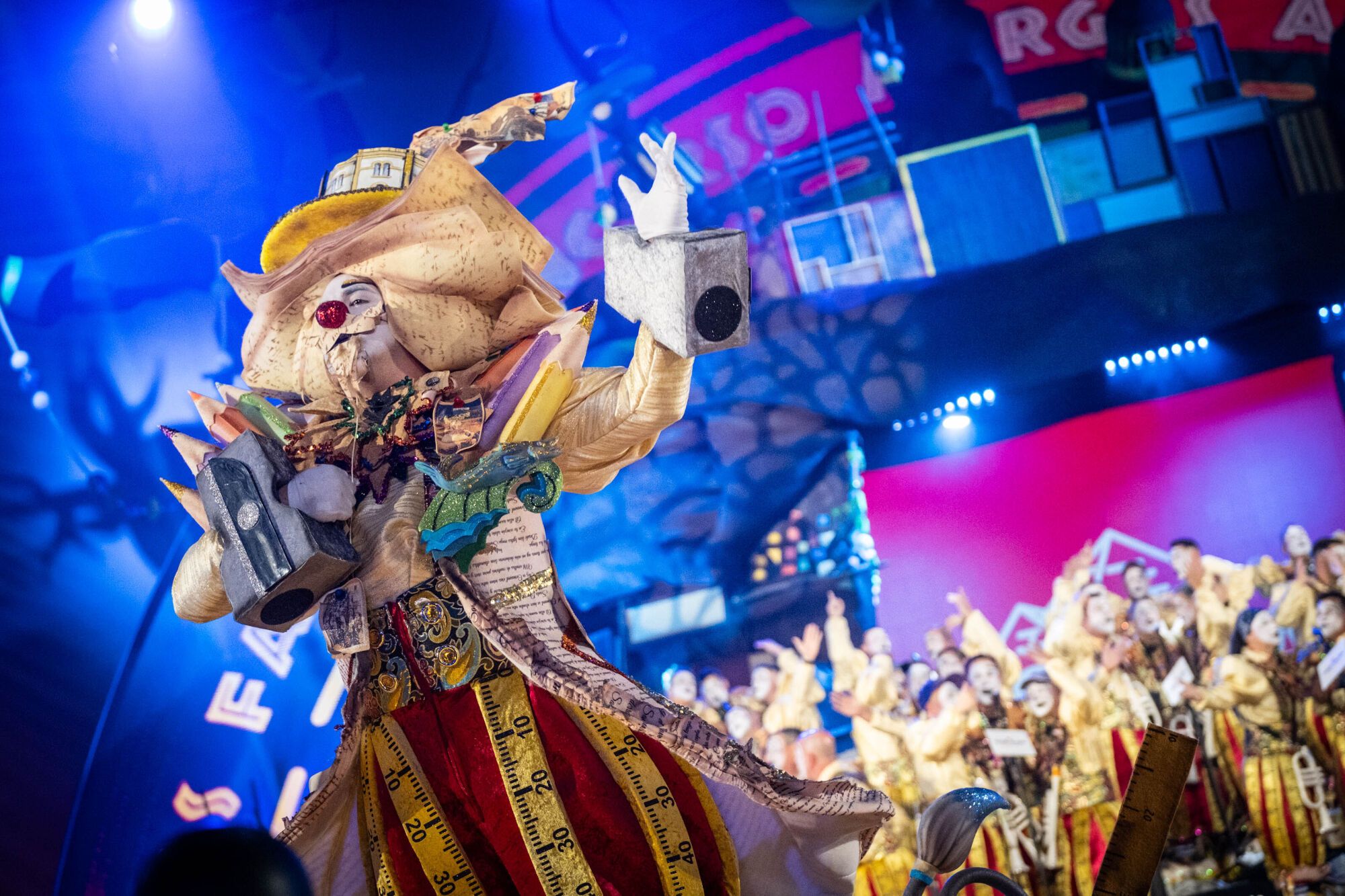 Son 52 componentes que esta noche lucieron la fantasía “Luchando y defendiendo vengo, para seguir soñando en Carnaval”, diseño de Mónica Campos y Nicole Antoine y caracterización de Daniel Carrasco, con letras de Alexis El Ruso.