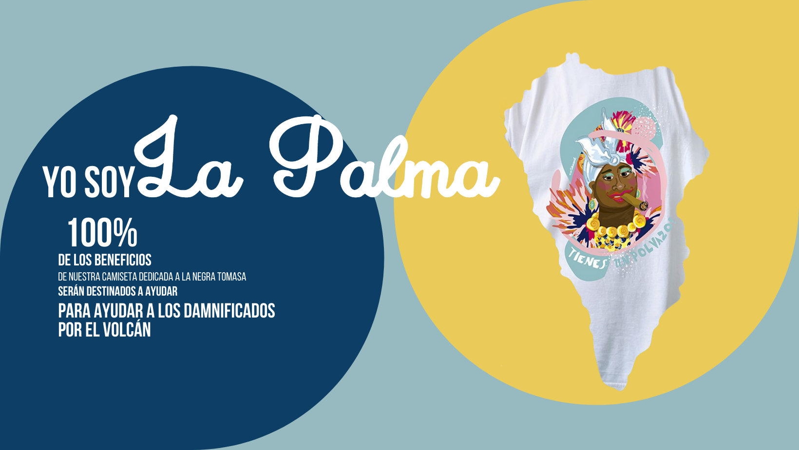 Por ello todos los beneficios obtenidos de la venta de las camisetas “tienes un polvazo”, inspirada en la famosa negra Tomasa de los carnavales palmeros, estarán destinadas a ayudar a los damnificados del volcán de Cumbre Vieja.